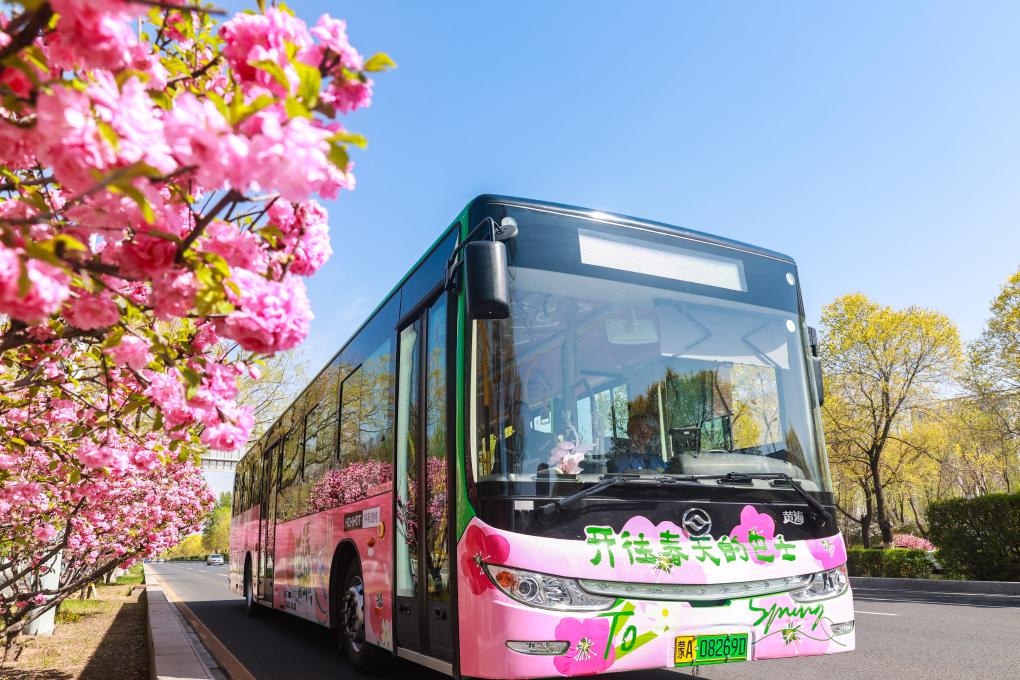 内蒙古自治区呼和浩特市开通了一条限时赏花免费公交专线“开往春天的巴士”,线路途经多个文旅地标,游客们乘坐着精心装扮的公交车,不仅能欣赏满城怒放的榆叶梅,还能在任意站点上下车去景点参观。
