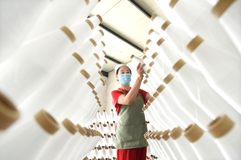 2024年5月1日,工人在山东省淄博市沂源县悦庄工业园一玻纤企业整理加工的产品。新华社发(赵东山摄)