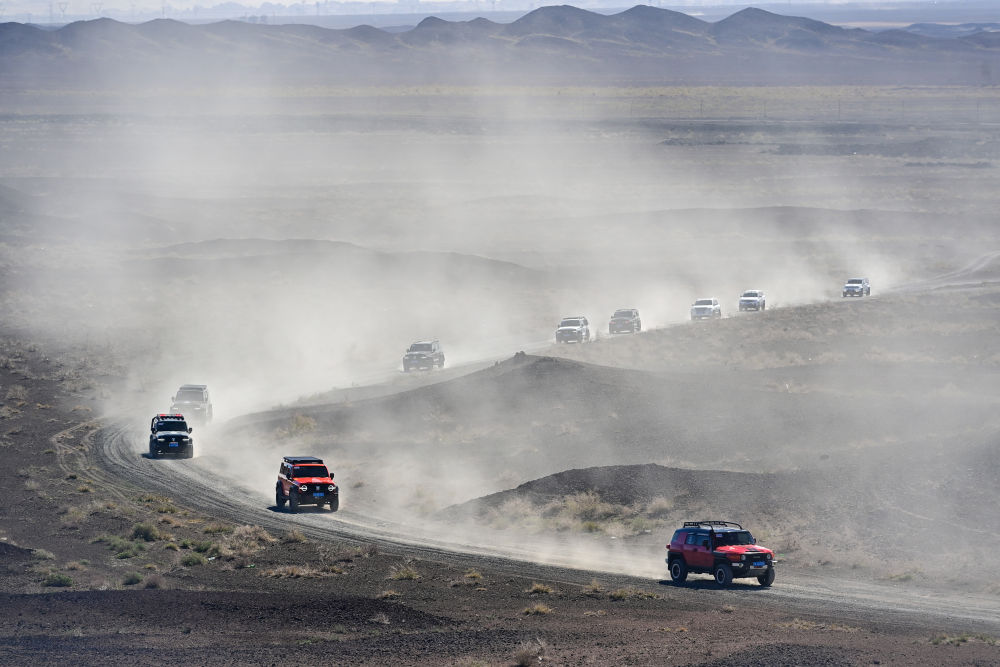 新疆克拉玛依市乌尔禾区,正午时分,随着一声发令枪响,130余辆越野车和20余辆摩托车引擎轰鸣,从世界魔鬼城景区达喀尔1号大本营飞驰而出,开启冒险之旅。
