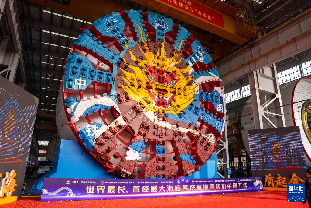2024年1月10日,超大直径盾构机“定海号”在铁建重工长沙第一产业园顺利下线。新华社记者 陈思汗 摄