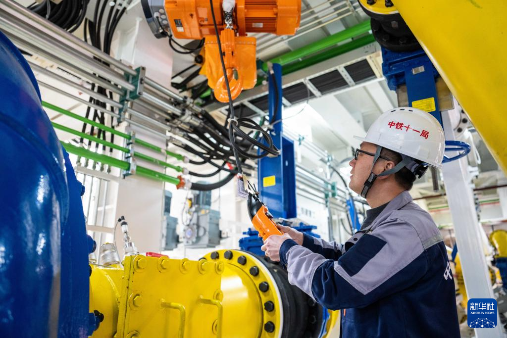 2024年1月10日,在铁建重工长沙第一产业园,工人在调试“定海号”超大直径盾构机。新华社记者 陈思汗 摄
