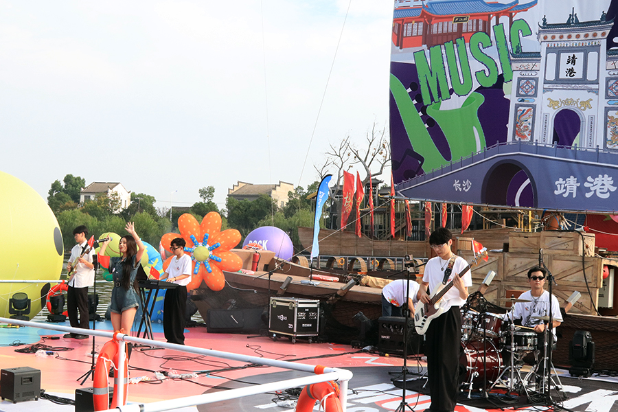 据主办方介绍,本次音乐周设置了电影、动漫、国风等主题,一系列经典金曲将陆续上演。同时,活动特意设置开放麦环节,每场乐队正式演出之前,游客和歌迷朋友都可以报名开放麦上台演唱,获得靖港古镇免费门票。
