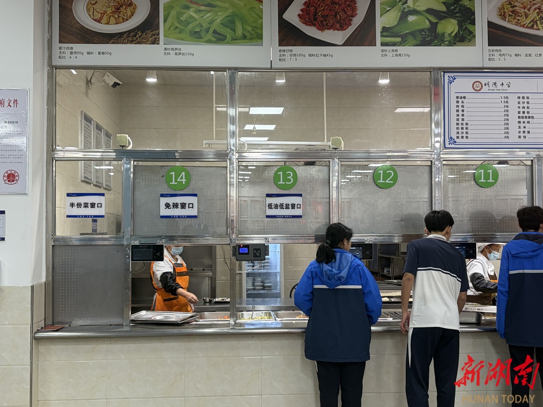“减脂餐每天能卖出一百多份,特别火爆。”总务处主任王俊萍介绍,学校不仅聘请营养师设计菜谱,还设立“减脂餐专窗”“半份菜窗口”,并在食堂设置了“健康营养角”,配备体重秤、营养转盘,让学生随时自查健康数据。