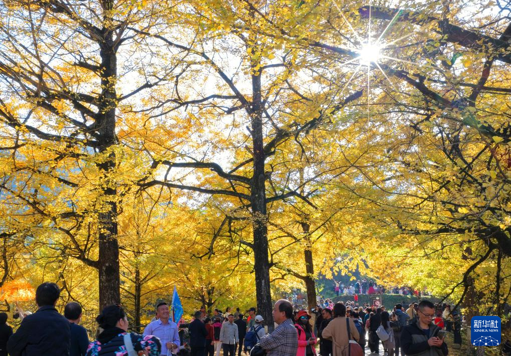 11月23日,游客在桐子坳村银杏林中游览拍照。新华社记者 赵众志 摄pagebreak