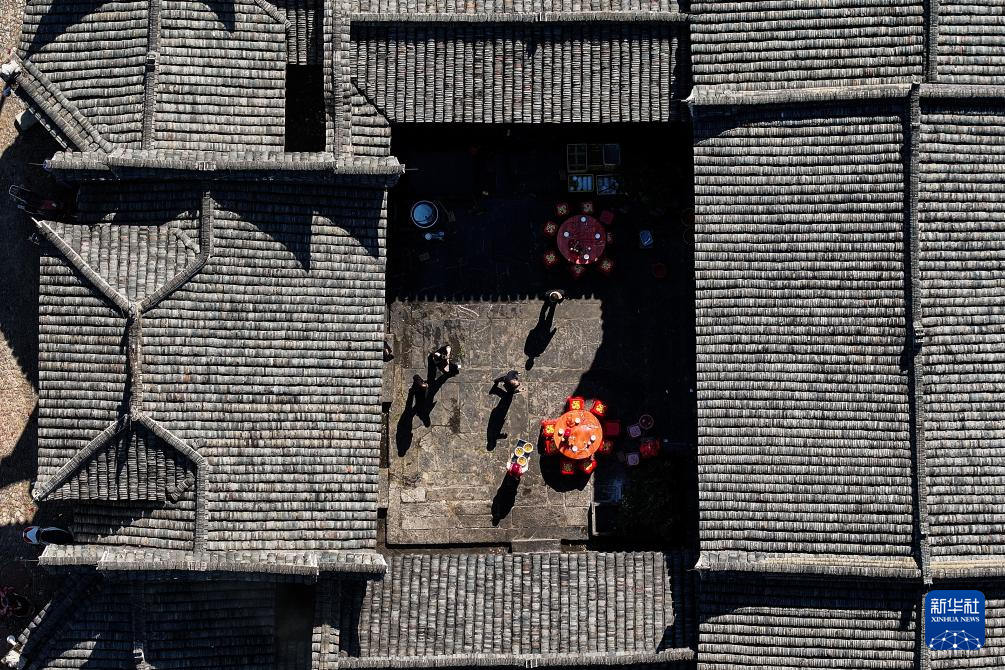 11月24日,人们在郴州汝城县金山村一处古祠堂内(无人机照片)。新华社记者 赵仲志 摄pagebreak