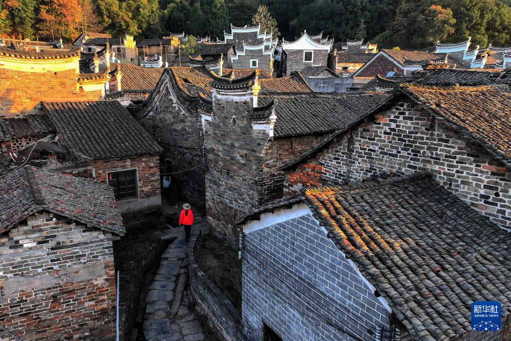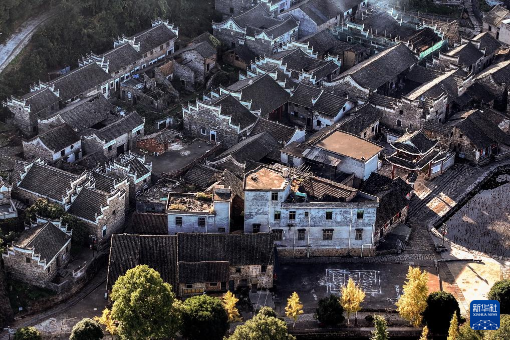这是11月25日拍摄的郴州永兴县板梁古村局部(无人机照片)。新华社记者 赵仲志 摄