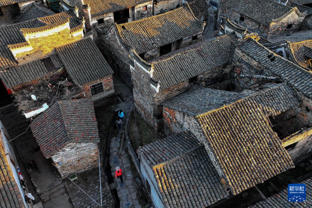 11月26日,游人在郴州永兴县板梁古村参观游览(无人机照片)。新华社记者 赵仲志 摄pagebreak