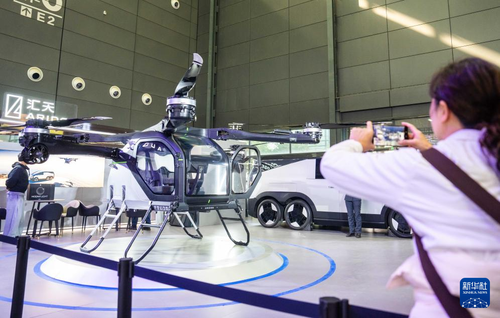 12月10日,观众在拍摄参展的飞行汽车飞行体。新华社记者 陈思汗 摄